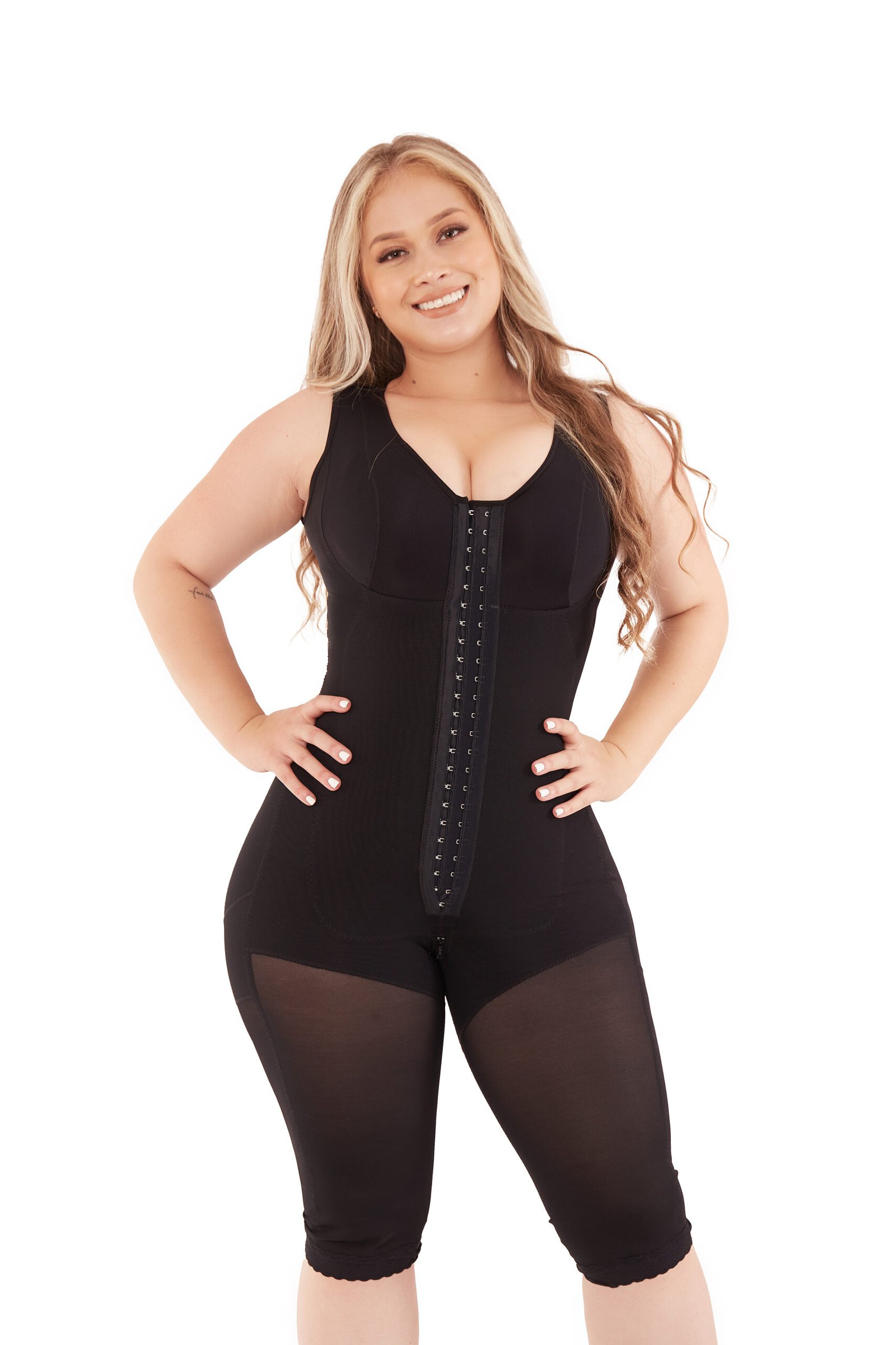 Faja larga  con mayor cobertura de espalda sisa y brasier incorporado  que brinda soporte en el busto