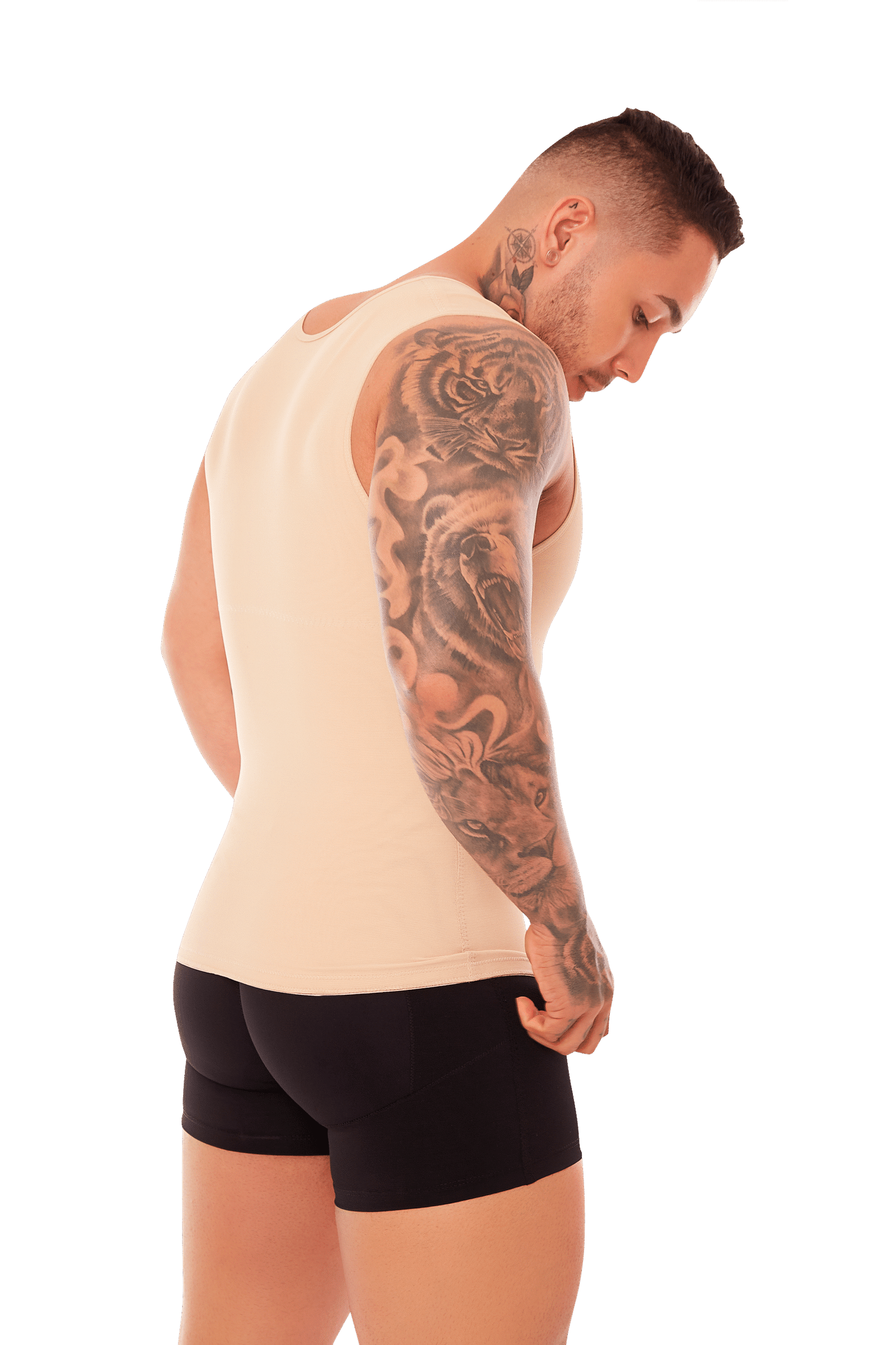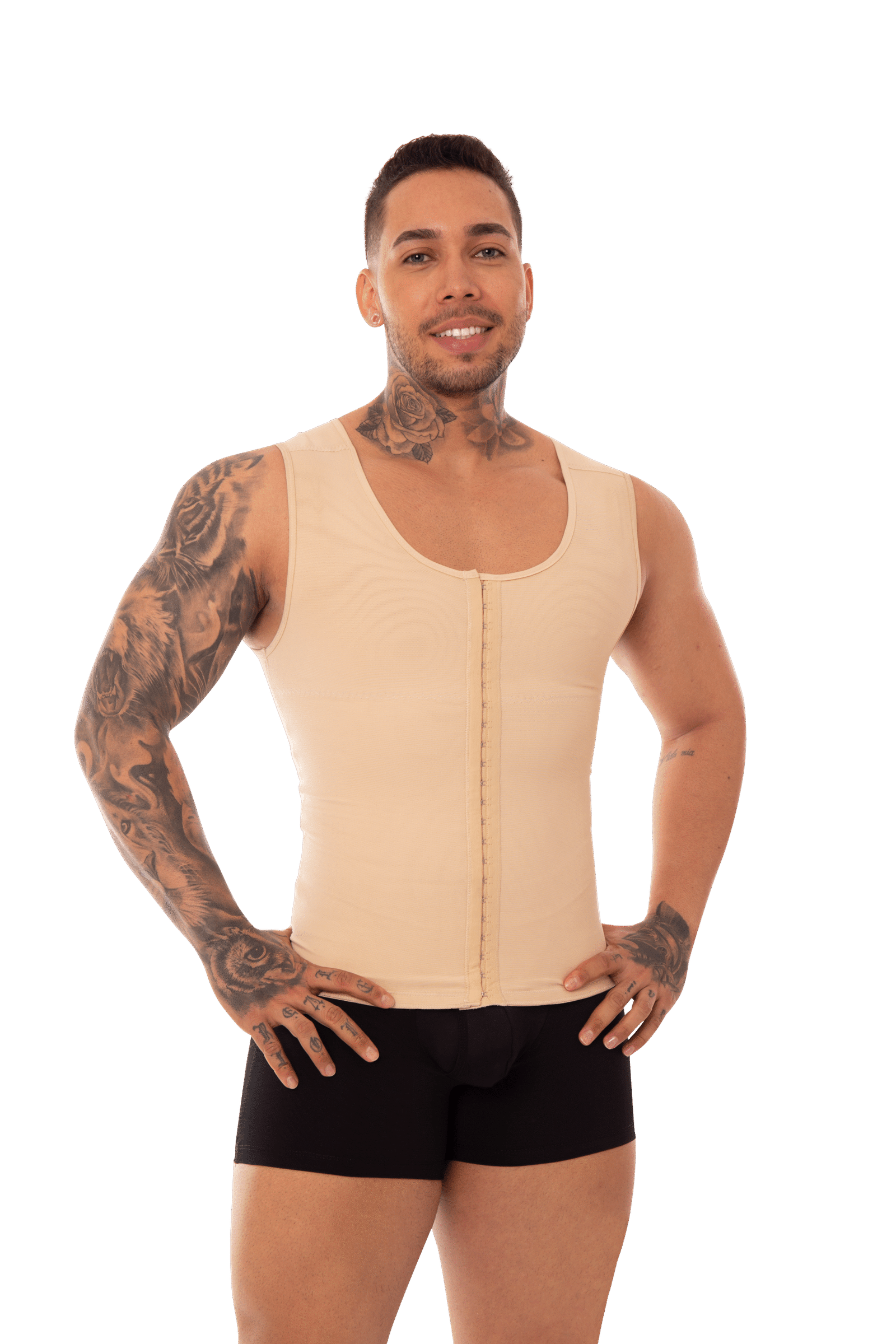 Chaleco masculino, espalda y sisa cubierta, corrector de postura, dos niveles de broches, ejerce control en la espalda, pecho y abdomen